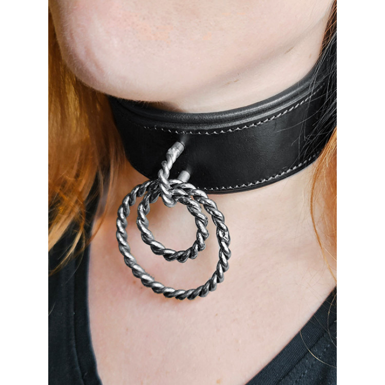 Collaret har et pent, men funksjonabelt design. To stødige ringer i front med et pent vridd-design lar deg feste både lenker og cuffs til halsbåndet.