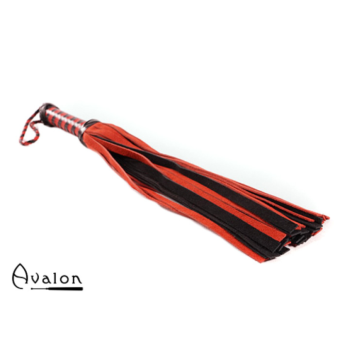 Avalon - HEIR - Svart og Rød Flogger med 36 Haler i Semsket Lær