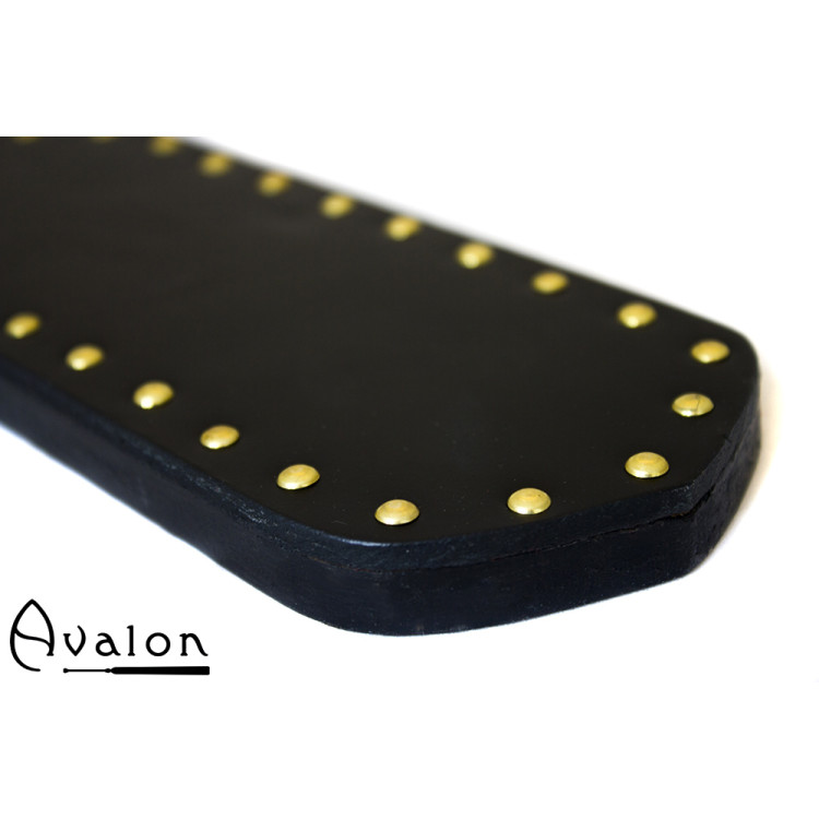 Nøkkelord: avalon, paddle, pisk, bdsm, lær, spanking, metall shield, tre, med, nagler