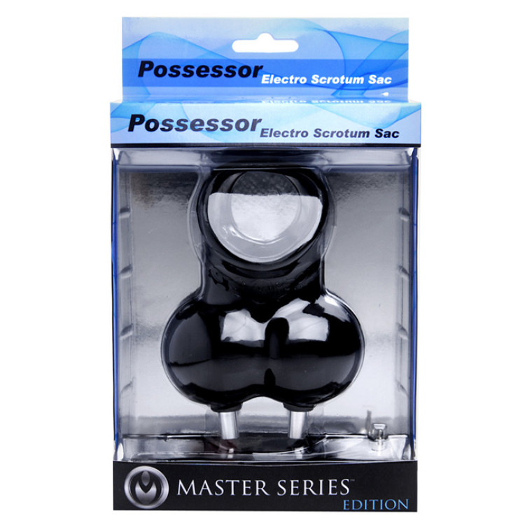 The Possessor fra Master Series gir deg alt du trenger for den ultimate elektro-opplevelsen. Påfør din favoritt elektro gel på pungen og før selve skaftet gjennom det øverste rommet, trekk deretter den nederste delen over pungen. Materialet er elastisk og vil tilpasse seg de fleste størrelser, men gir likevel en fast passform og et lett press når den er på.
