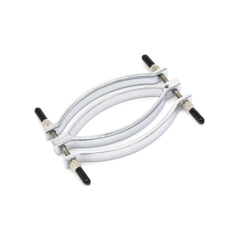 Plasser den over vulva og dra forsiktig de indre og/eller de ytre kjønnsleppene gjennom klemmene på hver sin side. Du kan deretter skru den sammen for en heftig opplevelse.