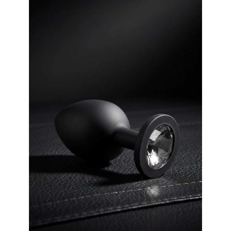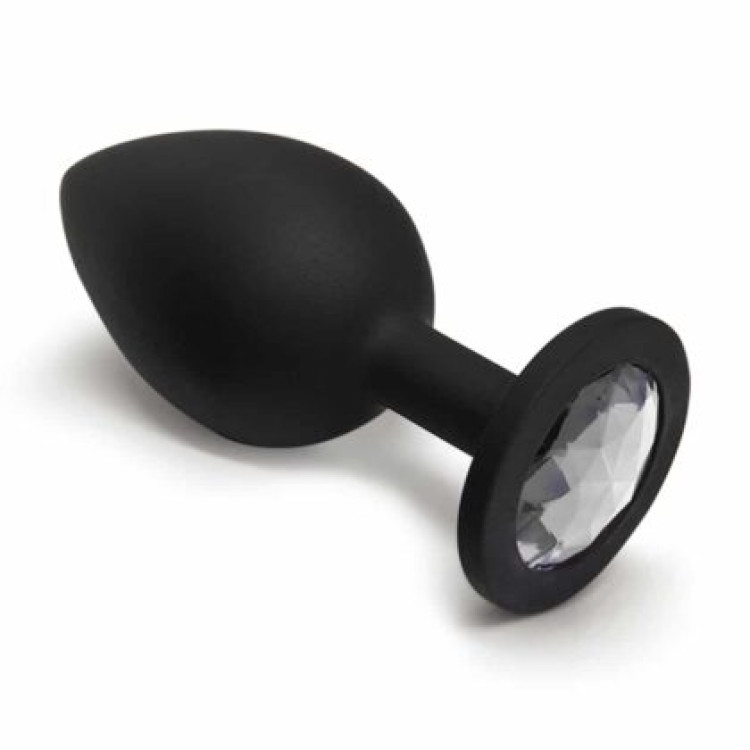 BQS - Sort Silikonbuttplug med Krystall - Klar - Medium