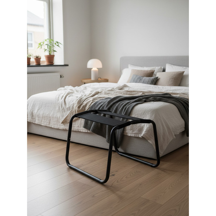 BQS Sexstol Sort er en stilren og solid sexstol som gir dere muligheten til å utforske nye stillinger og variere leken på en enkel måte. Stolen er laget med en robust ramme i stål, mens setet består av to sorte og fleksible bånd som gir både støtte og bevegelsesfrihet. Resultatet er en komfortabel stol som gjør det lettere å finne gode vinkler og mer intense opplevelser, uten at det blir klønete eller tungvint.