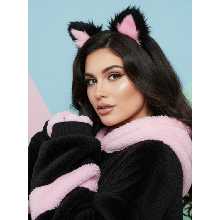 BQS - Ører med hårbøyle Sort og Rosa