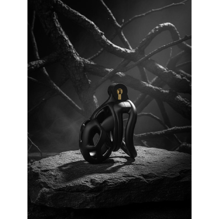 Du plasserer ringen rundt testiklene, før buret festes rundt penis og låses på plass med den interne låsepinnen. Den åpne designen gir god ventilasjon og gjør buret hygienisk og enkelt å rengjøre. Resultatet er en stram og tydelig følelse som passer perfekt til BDSM lek, dominans og erotisk kontroll, enten du bruker den alene eller sammen med en partner.