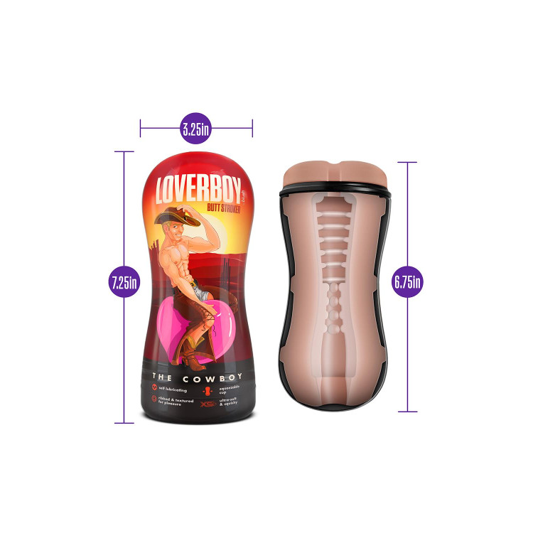 Oppdag the Cowboy fra Loverboy! Denne deilige masturbatoren vil gi deg en fantastisk onaniopplevelse med The Cowboys selvsmørende teknologi. Bruk bare litt vann og kjenn hvor smørende myk masturbatoren blir!