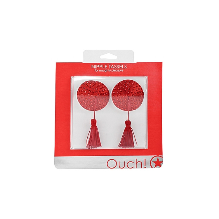 ProduktinformasjonForførende nipple tassels med glitrende stener og rød dusk.Kommer med selvklebende..