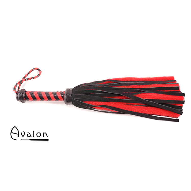Avalon - NYMPH - Flogger med Lær og Pels, Sort og Rød