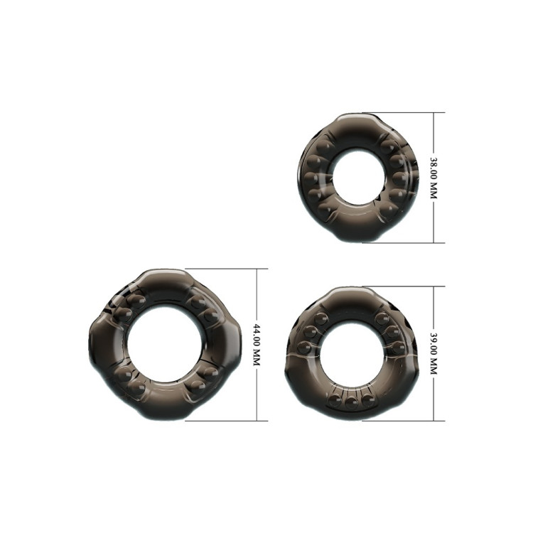 Penisring sett med tre forskjellige størrelser.