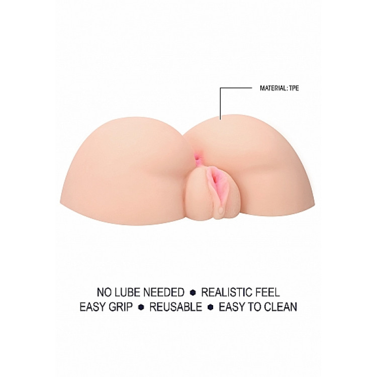 Stor, naturtro masturbator med både vaginal og anal åpning.